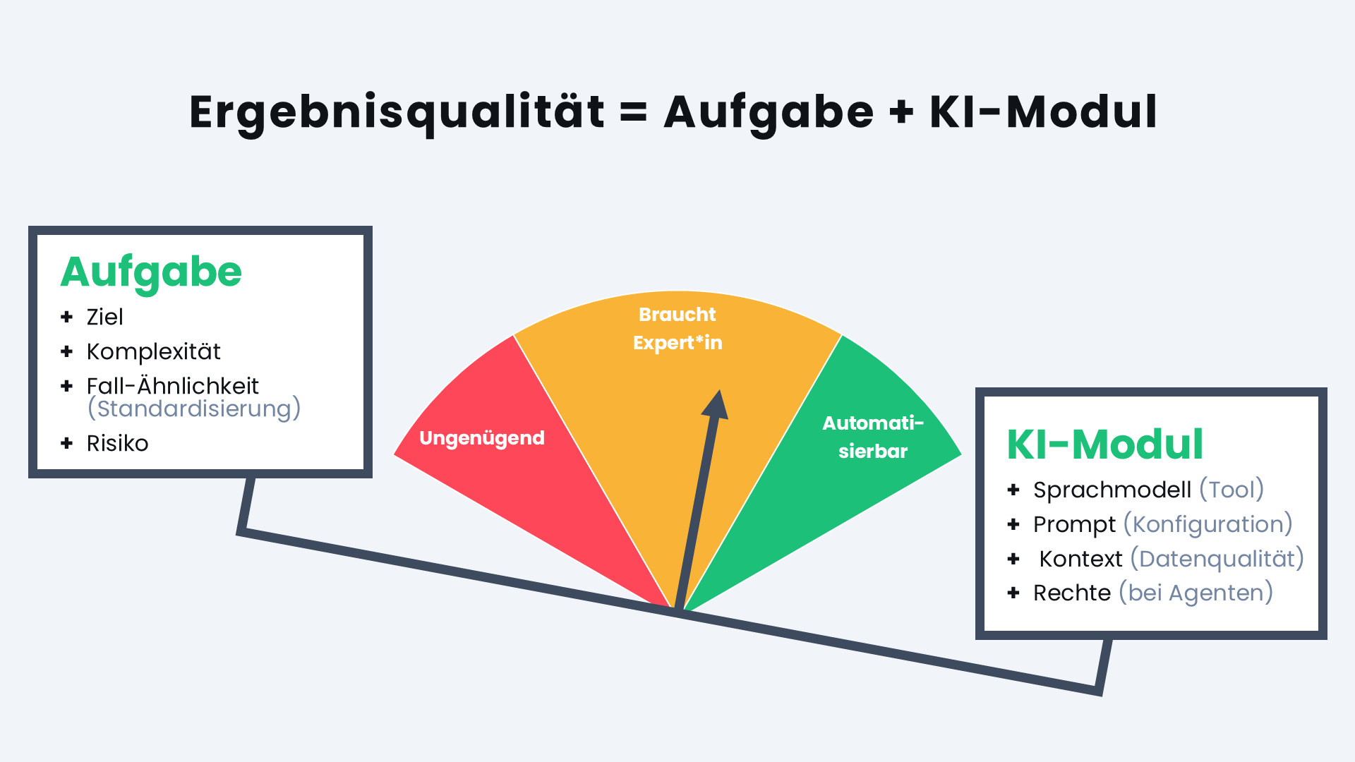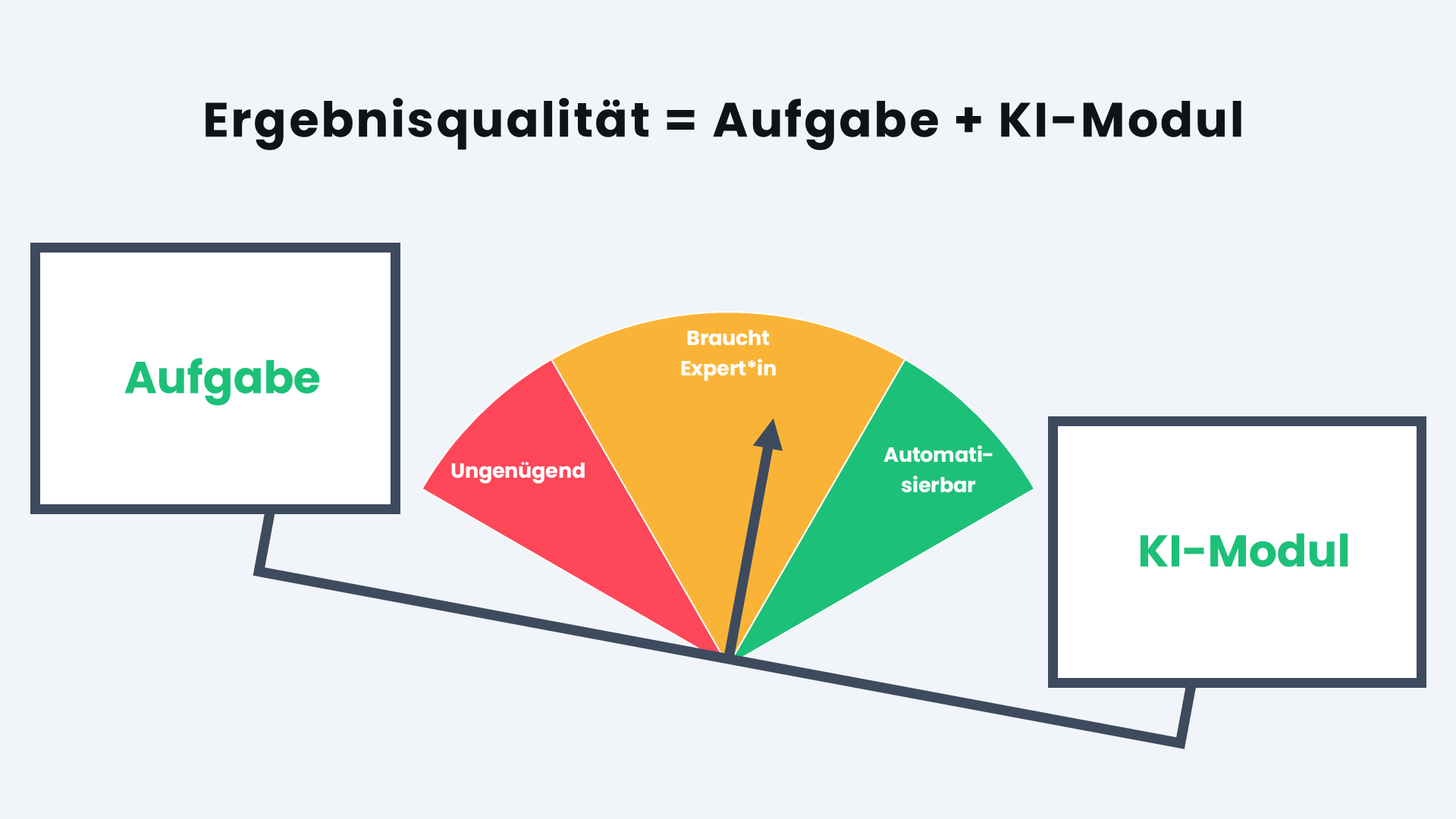 🚥Drei Zonen auf einer Skala: Von "unbrauchbar“ über „das hilft mir, damit kann ich etwas anfangen“ bis hin zu „das funktioniert so gut, dass KI das auch alleine könnte“.